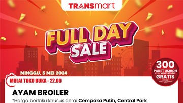 Transmart kembali menggelar promo gede-gedean dalam Transmart Full Day Sale. Ada diskon hingga 50%+20% untuk berbagai produk, salah satunya ayam broiler Baca selengkapnya via Detik Finance